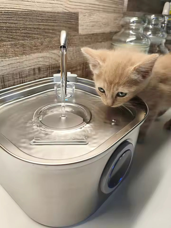 Plastic water bowls harbour bacteria inside the material itself — invisible to you, but your cat's nose detects it perfectly. That's why she avoids the bowl and begs at the tap instead.